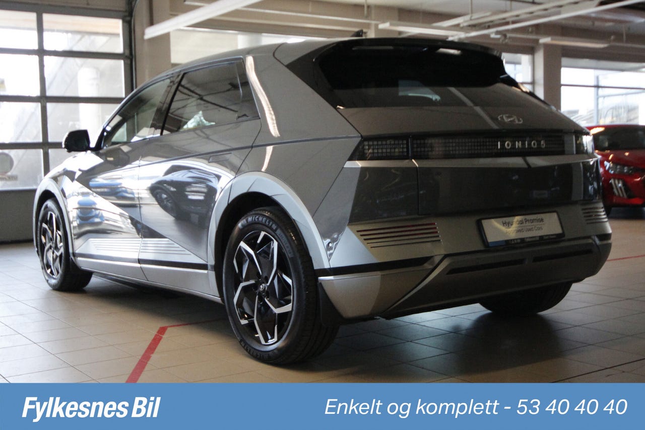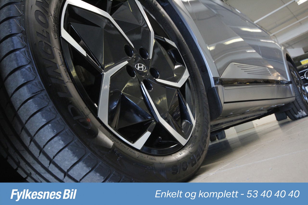 Med sin kraftige firehjulstrekk (AWD) og en elektrisk rekkevidde på hele 481 km (WLTP), tar denne IONIQ 5 deg trygt og komfortabelt dit du skal, uansett vær eller distanse. Nyt en stillegående, responsiv og romslig kjøreopplevelse i denne komfortable elbilen.
