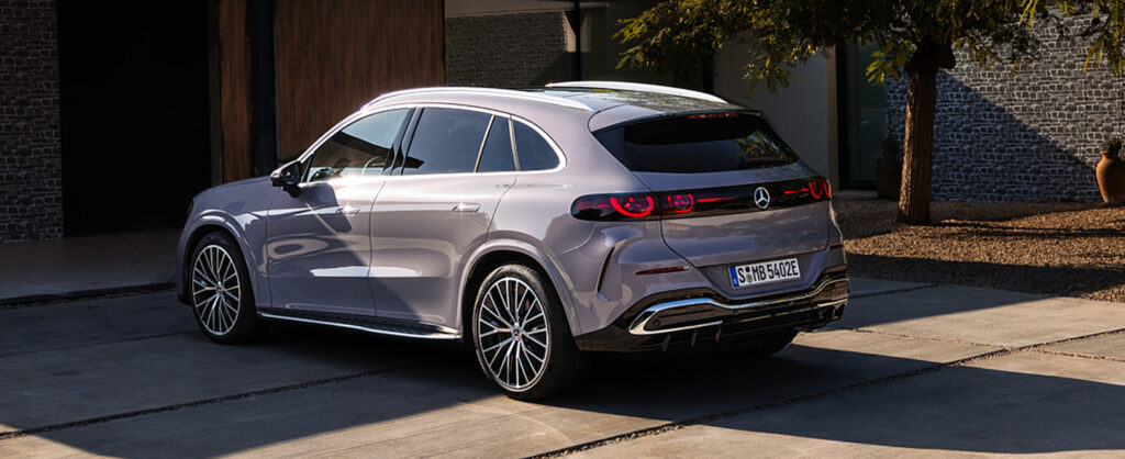 GLC med EQ-teknologi utstråler særpreg og tilstedeværelse med sitt karakteristiske EQ-frontdesign – med den ikoniske Mercedes-Benz-grillen, som kan leveres med belysning som skaper en fascinerende glød rundt panelet og stjernen. Sett fra siden fremheves den elegante coupéaktige silhuetten av kraftfulle 19–21-tommers felger som understreker bilens atletiske eleganse. Bak imponerer GLC med markante hjulbuer og LED-baklykter i det karakteristiske stjernedesignet – som gir bilen et selvsikkert, moderne og umiskjennelig EQ-uttrykk.